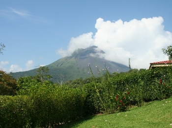 Arenal as seen from our hotel. We were told we'd feel rumbles from this active volcano, but it was quiet while we were there. |